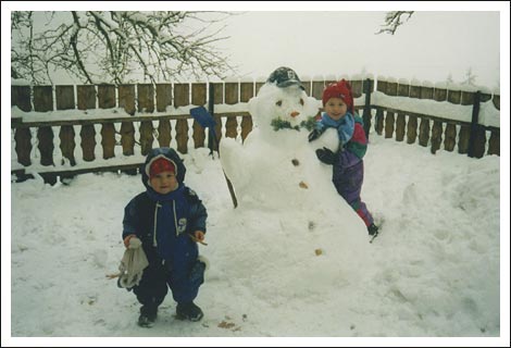 Antonia und Sophia bauen einen Schneemann