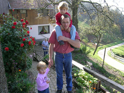 Das ist Stefan, der Bauer des Hofes, und seine Töchter Antonia und Sophia. Sie zeigen uns nun den Hof.