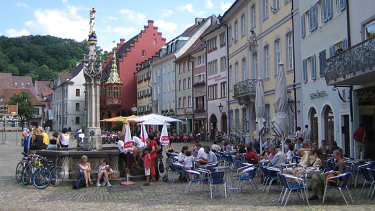 Gemütliches Straßencafe auf dem Münsterplatz in Freiburg